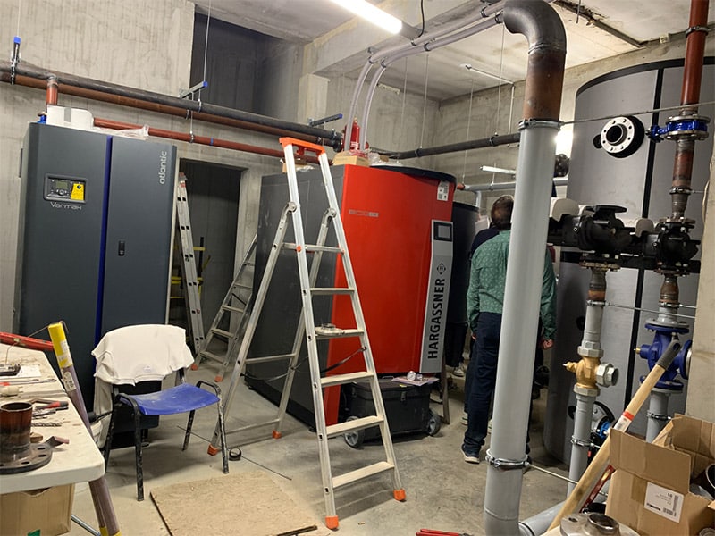 chauffage innovant (chaudière biomasse bois à granulés), utilisation de matériaux bio-sourcés, choix de